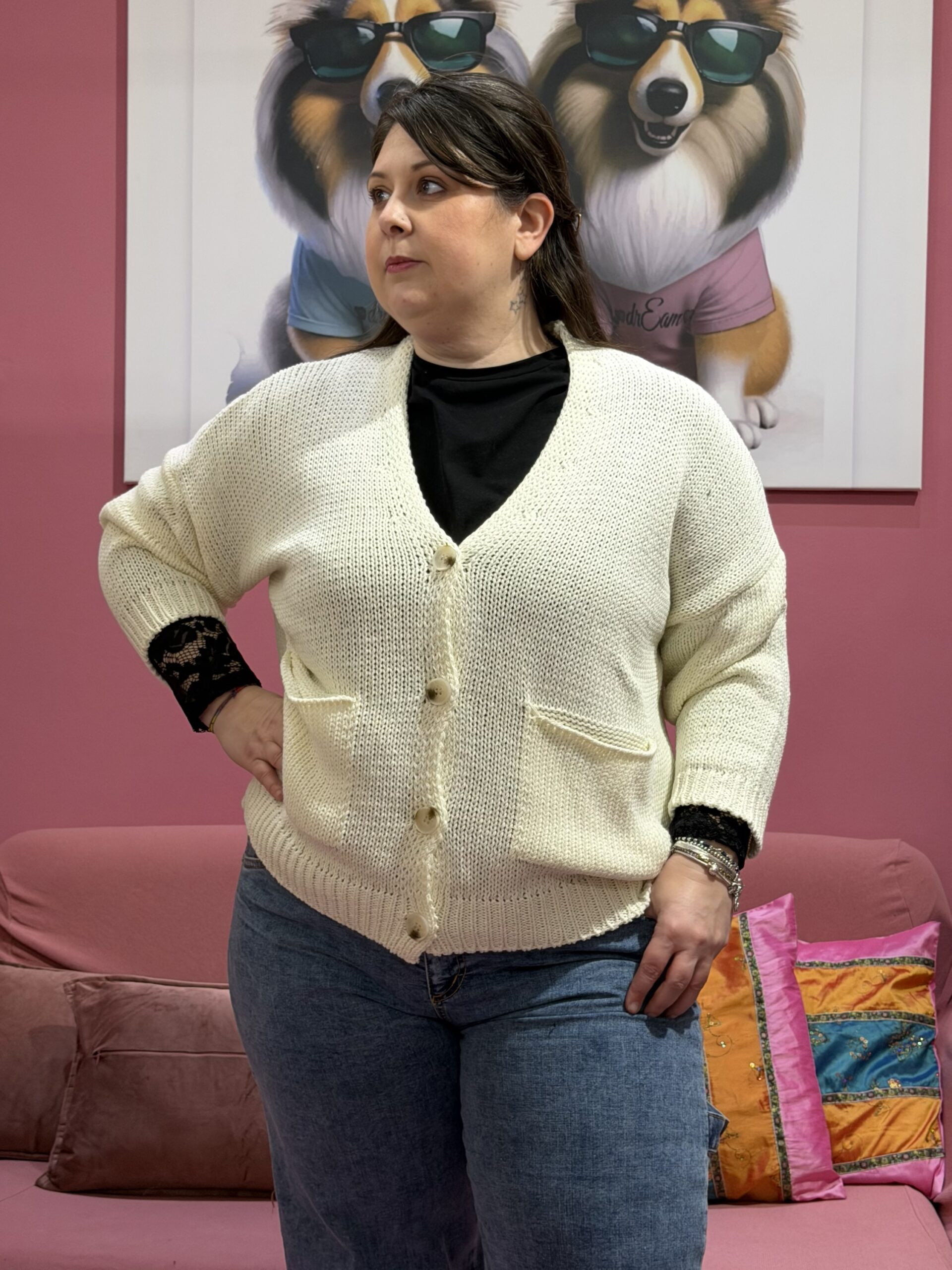 Un cardigan classico, pratico e facilissimo da abbinare, uno di quei capi che si riescono a “girare” davvero con tutto.