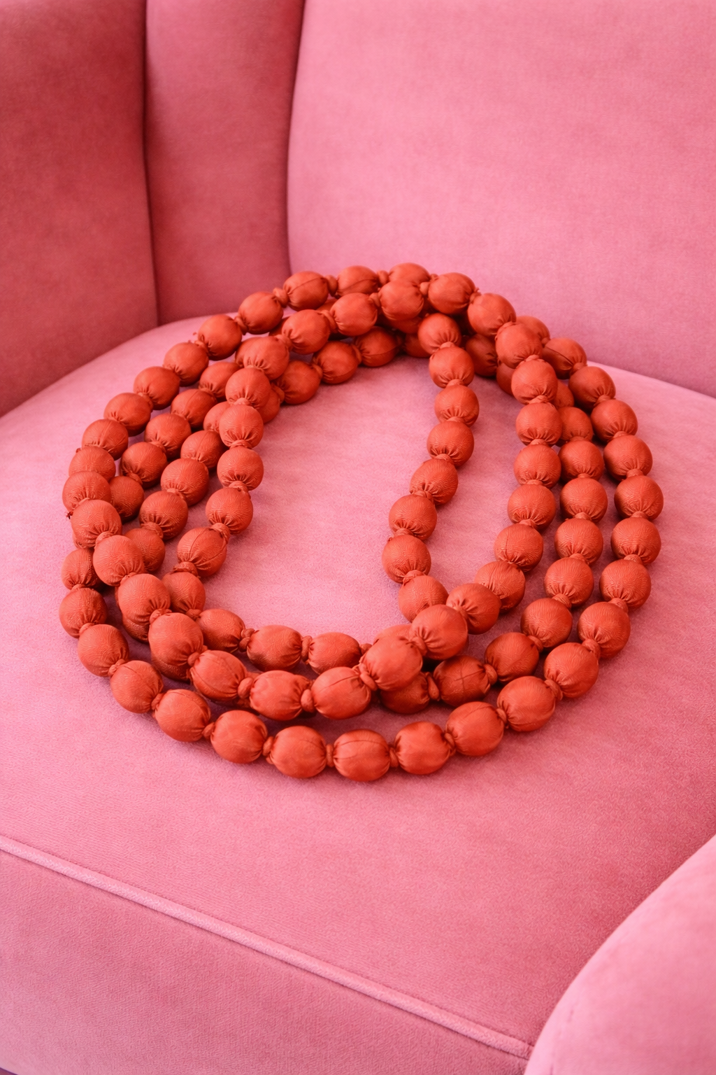 Collana in seta 100% con palline di legno di 1 cm circa (Circa 150 palline).