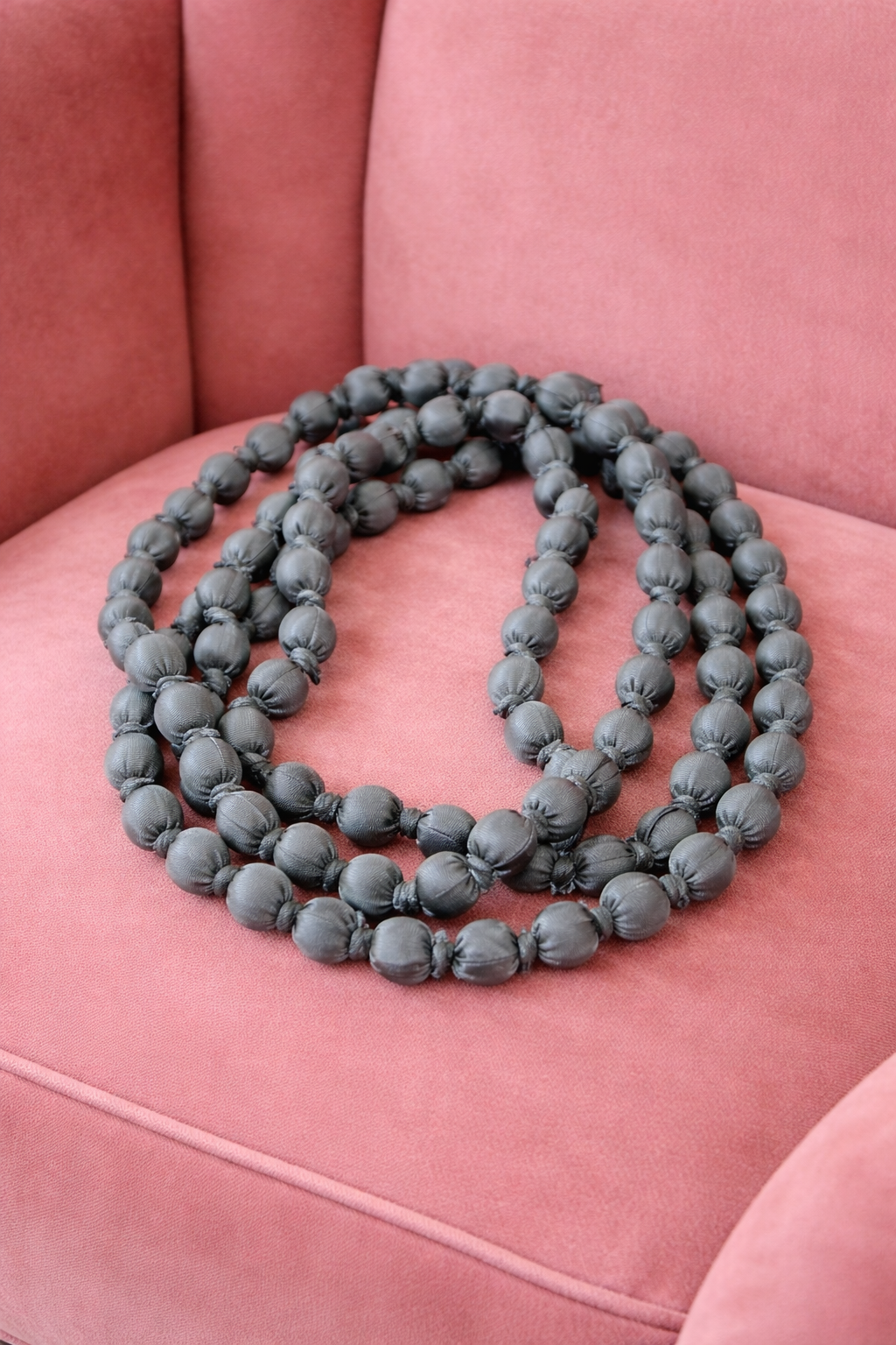 Collana in seta 100% con palline di legno di 1 cm circa (Circa 150 palline).