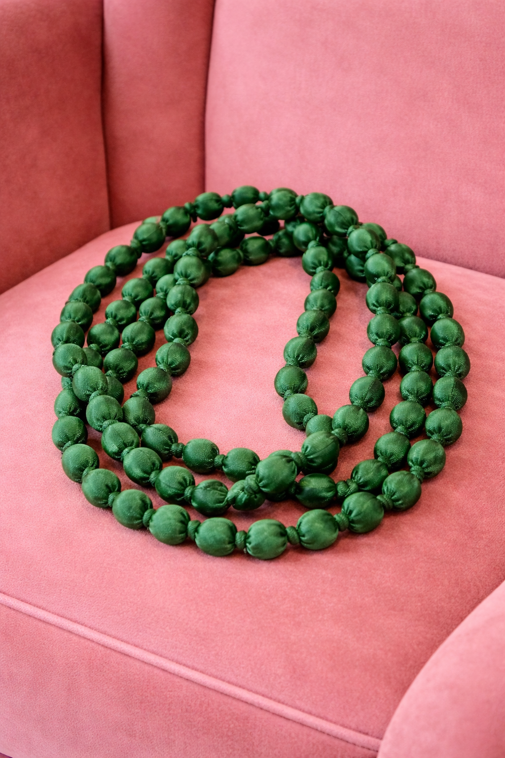 Collana in seta 100% con palline di legno di 1 cm circa (Circa 150 palline).