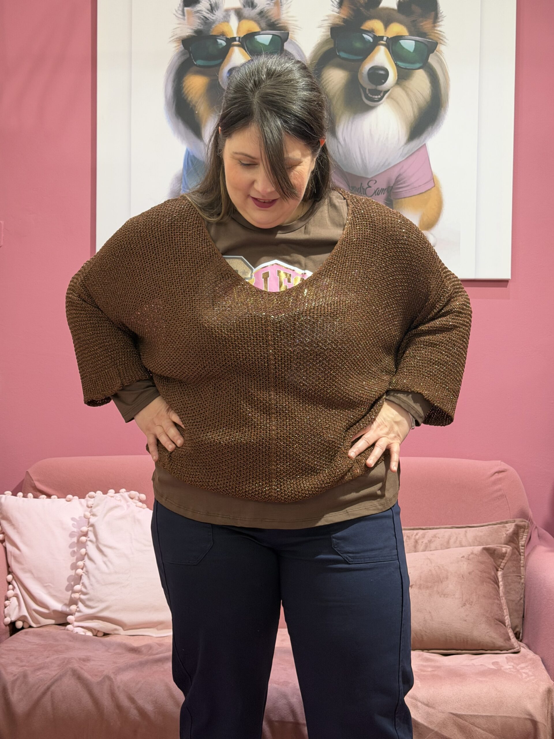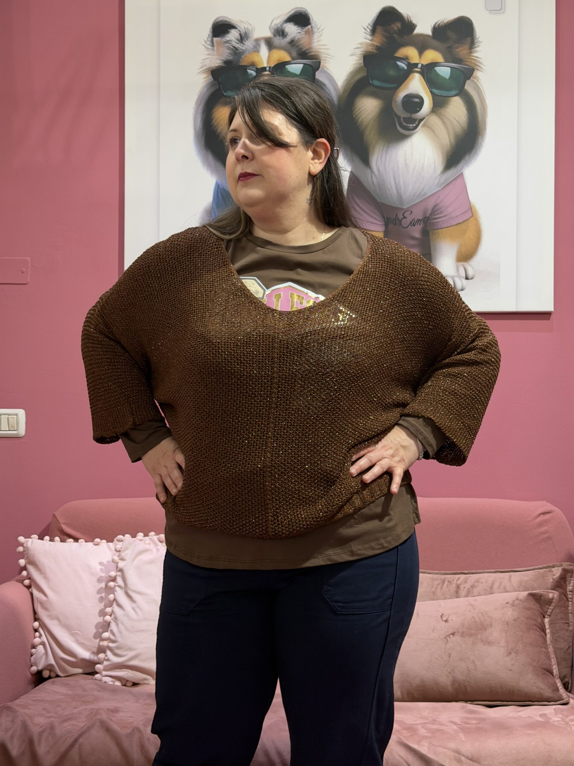 Questo maglione linea Curvy è realizzato in maglia con filo in lurex, che dona un punto luce delicato e raffinato, perfetto sia per il giorno che per la sera.