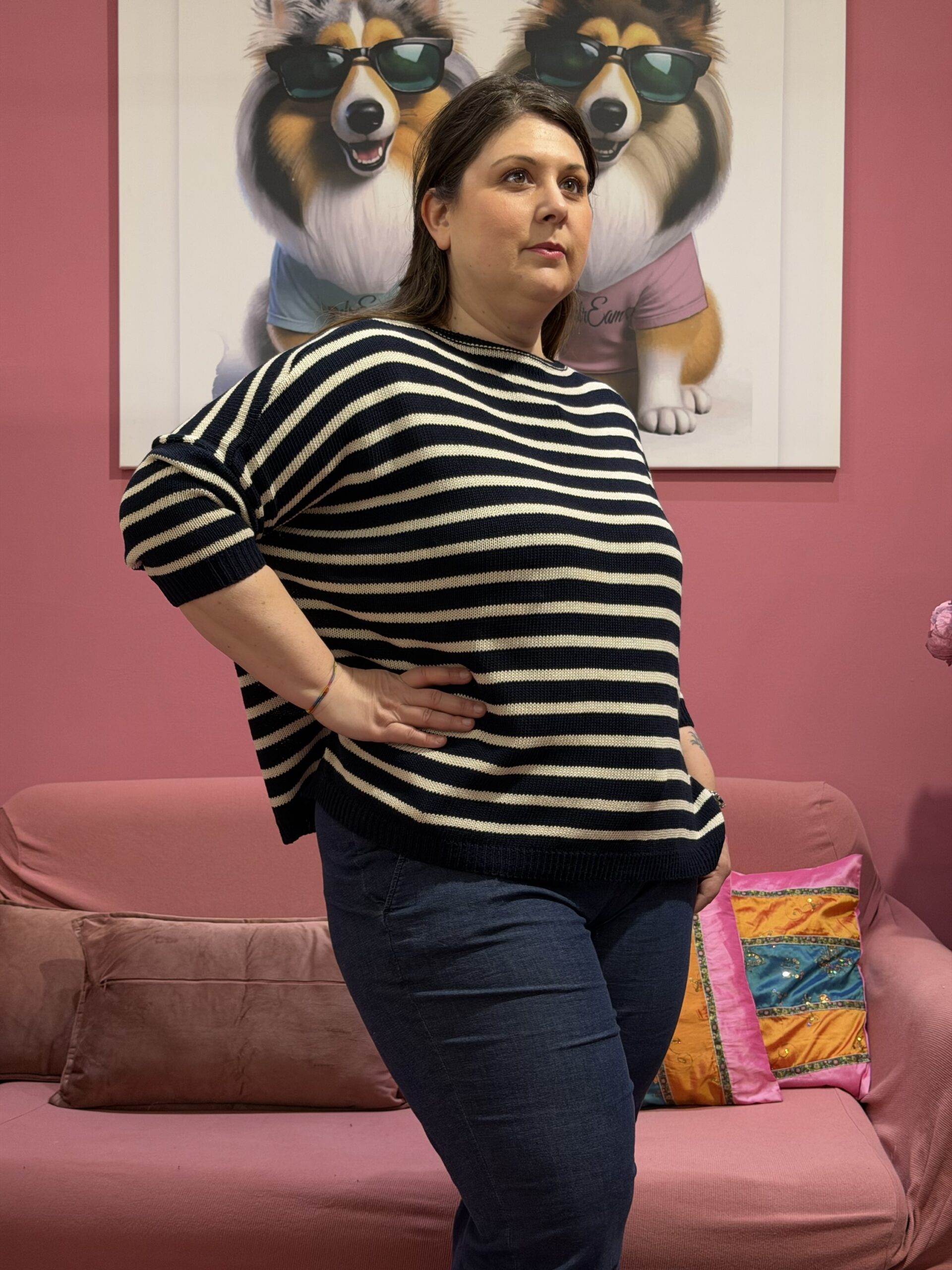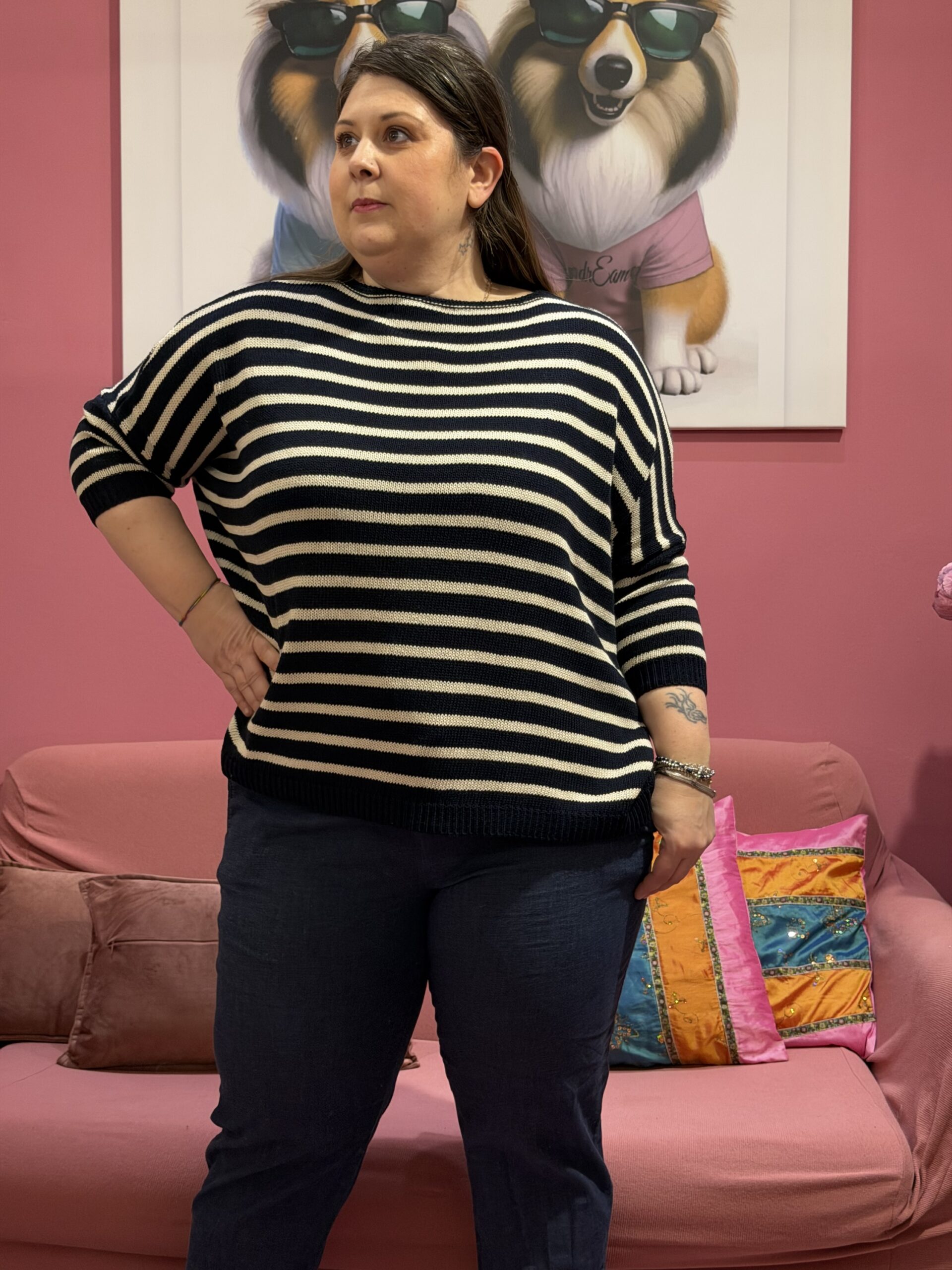 Questo maglioncino in cotone ha una vestibilità a scatola, bella abbondante e morbida, che cade bene senza segnare e regala subito un effetto rilassato ma curato ✨